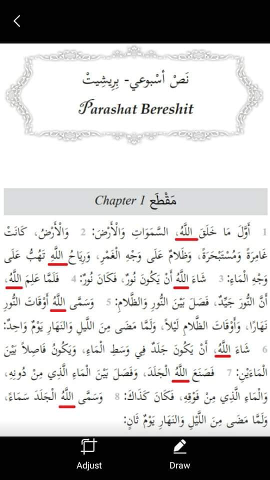 Here is a screenshot from the 9th century Arabic translation of the Bible by the Jewish scholar Sadia Gaon. See the use of the name 'Allah' on page 1 of that translation [Genesis chapter 1].